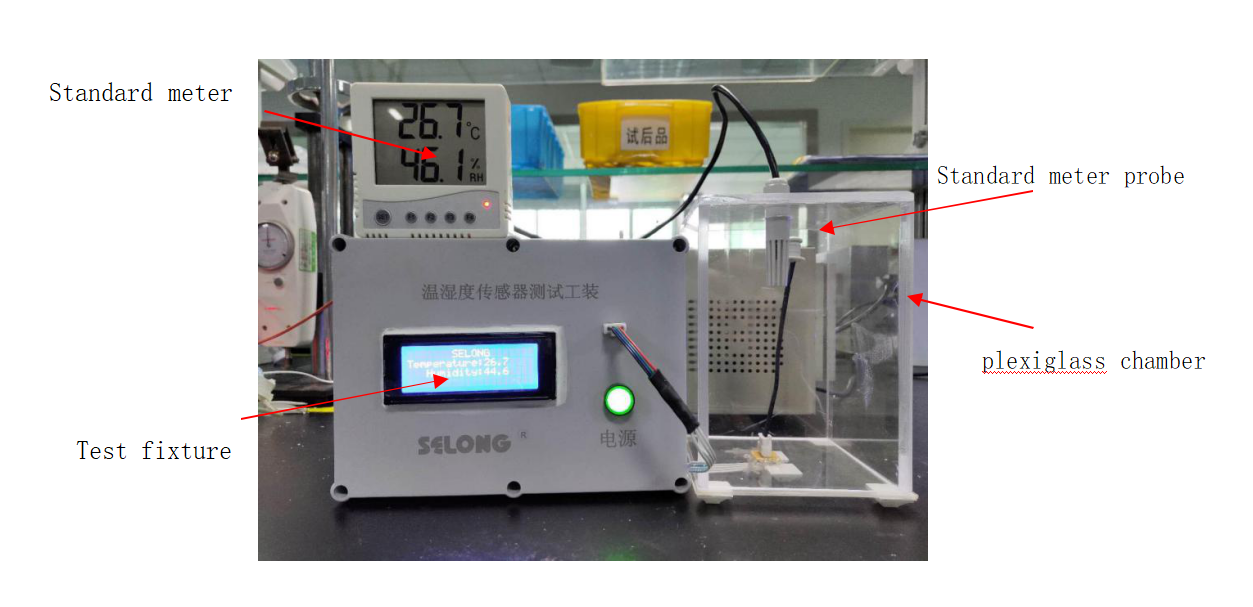 1、Test method: Under normal environment, place the product and the standard meter probe in the plexiglass chamber at the same time. The error of the test fixture reading and the the standard meter reading is within allowable range (temperature ± 2 ℃; humidity ± 5%).