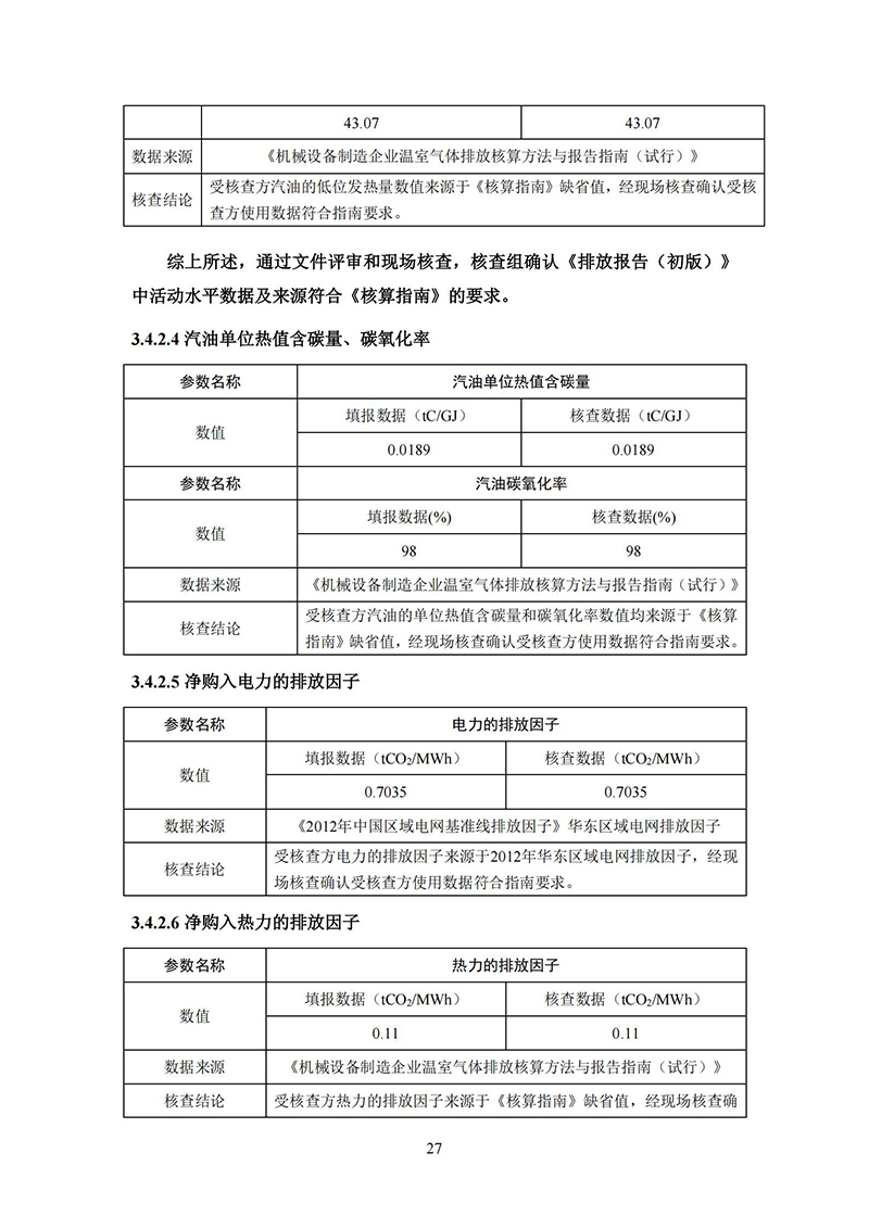 碳核查报告(必一电气股份有限公司)-2019年-公示